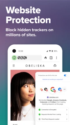 DuckDuckGo viib privaatsuse uuele tasemele, pakkudes funktsioone, mis ületavad märkimisväärselt tavaliste brauserite vaikeseadeid. Automaatne krüpteerimine sunnib paljusid külastatavaid saite kasutama turvalist HTTPS-ühendust, kaitstes teie andmeid nuuskijate eest. Kolmanda osapoole jälgimisküpsiste blokeerimine ja veebilehtede jälgijate peatamise tehnoloogia takistavad ettevõtetel kogumast teie kohta isiklikke andmeid enne, kui need üldse laadida jõuavad. Lisaks on meil unikaalne e-posti kaitse (beeta), mis neutraliseerib enamikus kirjades sisalduvad jälgijad, ning App Tracking Protection, mis pakub kaitset ka teistes seadme rakendustes leiduvate peidetud jälgijate eest.