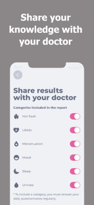 Femilog® eristub teistest, pakkudes võimalust jagada oma jälgimistulemusi otse arstiga. See annab teile ja teie tervishoiuteenuse osutajale väärtuslikke andmeid, et langetada teadlikke otsuseid parimate terviselahenduste osas. Femilog® väärtustab teie privaatsust kõrgelt – teie tundlikud andmed on alati turvalised ega ole kunagi müügiks. Lisaks praktilistele tööriistadele kutsume teid proovima Femilog® menopausi viktoriini, et oma teadmisi proovile panna ja avastada uut. Avastage ka eksklusiivset sisu, sealhulgas artikleid ja videoid, mis sisaldavad ekspertide nõuandeid ja inspireerivaid lugusid naistest, kes on menopausi edukalt läbinud. Femilog® ei asenda professionaalset meditsiinilist diagnoosi, nõuandeid ega ravi – mis tahes sümptomite või tervisemurede korral peate konsulteerima oma arstiga.